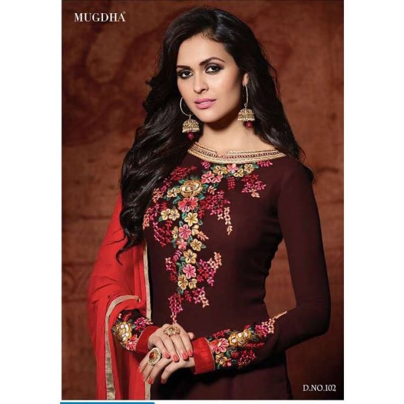 DARK MAROON 102 MUGDHA DESIGNER STRAIGHT SALWAR KAMEEZ