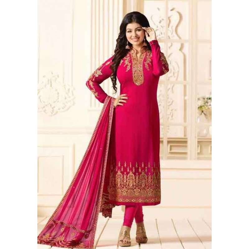 HOT PINK EMBROIDERED PARTY WEAR INDIAN BOLLYWOOD STYLE SALWAR SUIT