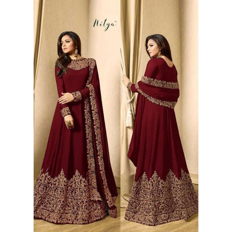 MAROON EMBROIDERED FLOOR LENGTH INDIAN ANARKALI SUIT