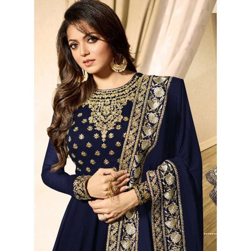 A Gorgeous New Georgette/Net Semi stitched dress with thread embroidery, zari work and stone work.