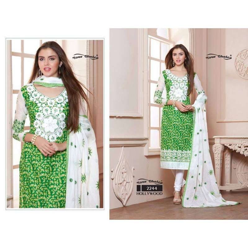 ZYC2244 GREEN AND WHITE HOLLYWOOD YOUR CHOICE PRINTED COTTON SALWAR KAMEEZ