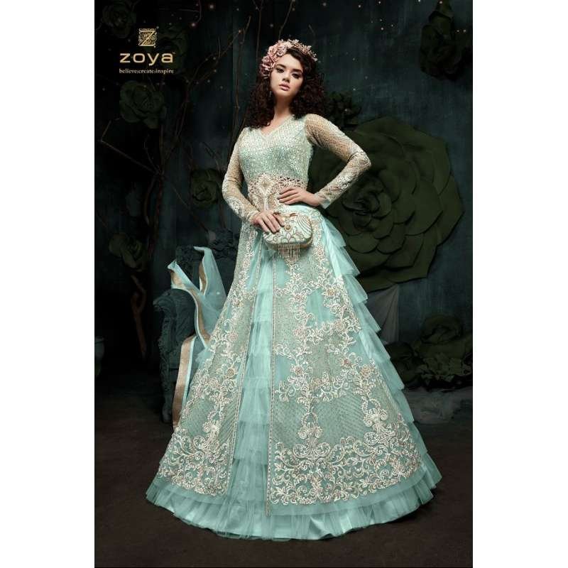 SKY BLUE INDIAN DESIGNER WEDDING AND BRIDAL GOWN