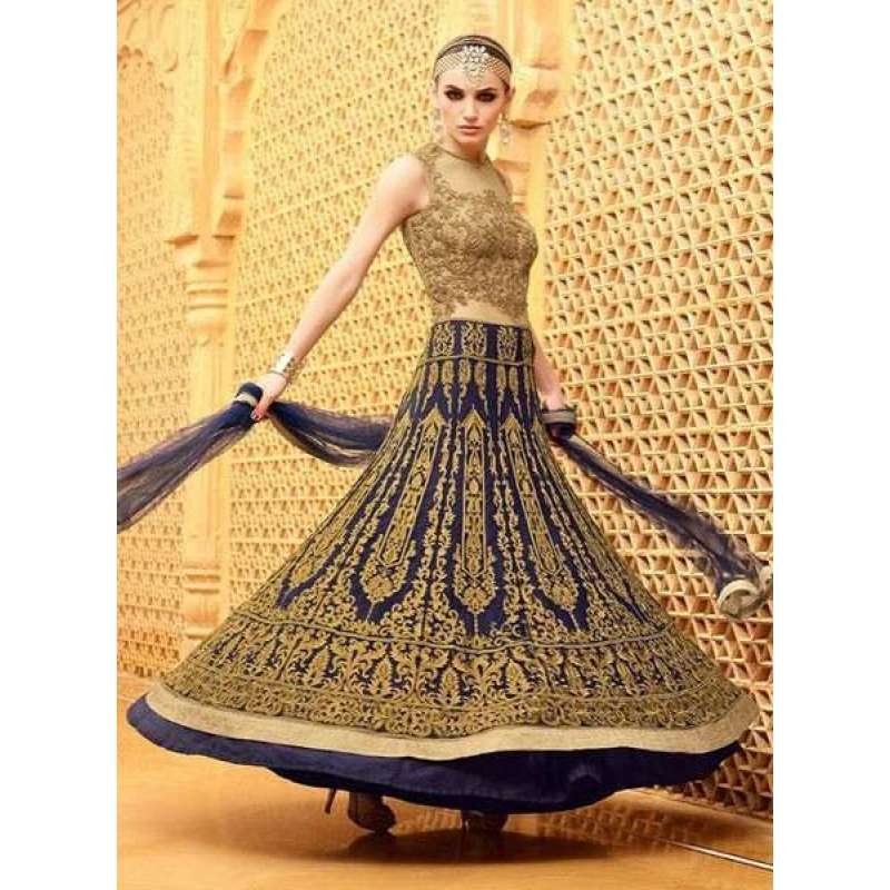 27002 GOLDEN AND NAVY BLUE MOHINI GLAMOUR LEHENGA SUIT
