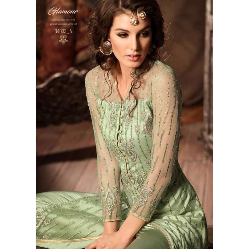 GREEN MOHINI GLAMOUR GEORGETTE SALWAR SUIT AT ASIAN COUTURE