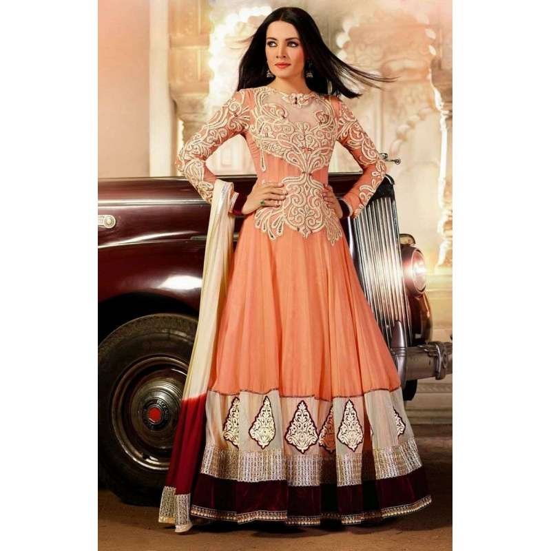 Peach White Designer Dress Anarkali Suit
