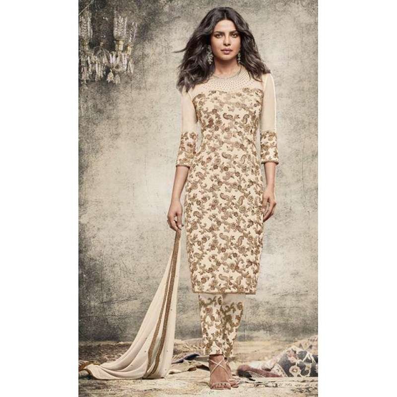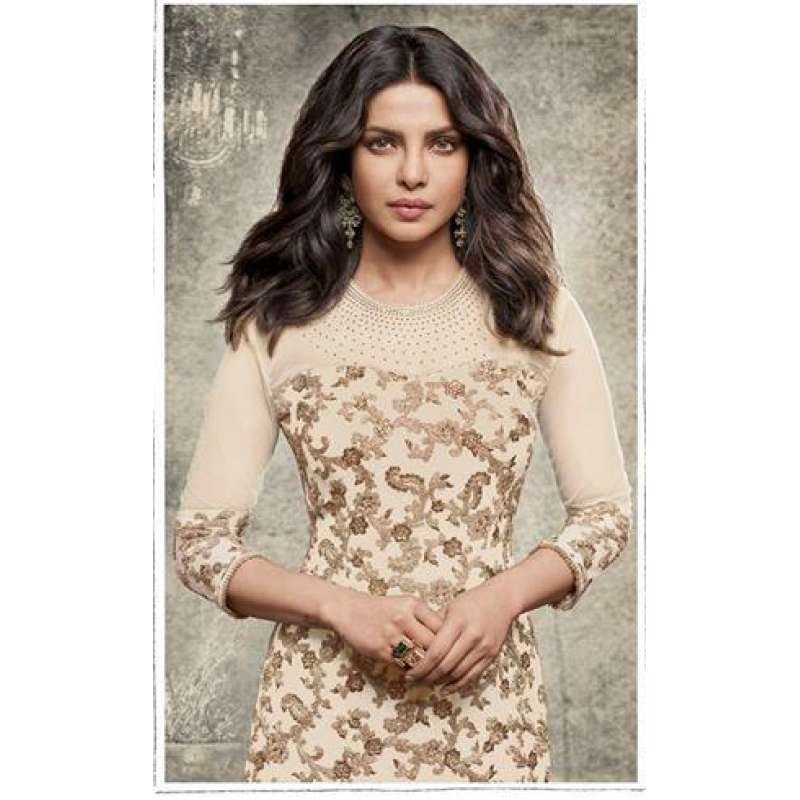 5153-G BEIGE HEROINE STARDIVA PRIYANKA CHOPRA GEORGETTE STRAIGHT CUT SEMI STITCHED SUIT