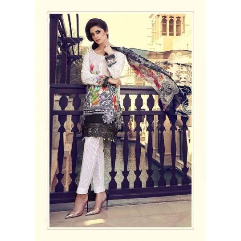 55006 BLACK AND WHITE MARIA B LAWN EMBROIDERED AND PRINTED PAKISTANI STYLE SUIT