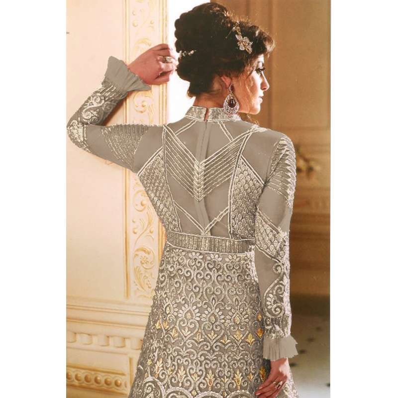 GREY INDIAN & PAKISTANI WEDDING WEAR ANARKALI SUIT