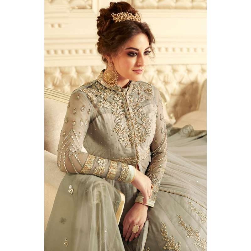 BEAUTEOUS GREY INDIAN & PAKISTANI DESIGNER PARTY AND WEDDING WEAR FANCY ANARKALI GOWN