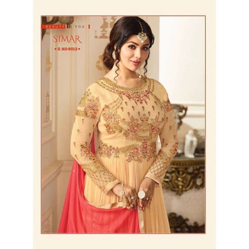 9013 PEACH GLOSSY SIMAR HEAVY EMBROIDERED AYESHA TAKAI ANARKALI STYLE GOWN