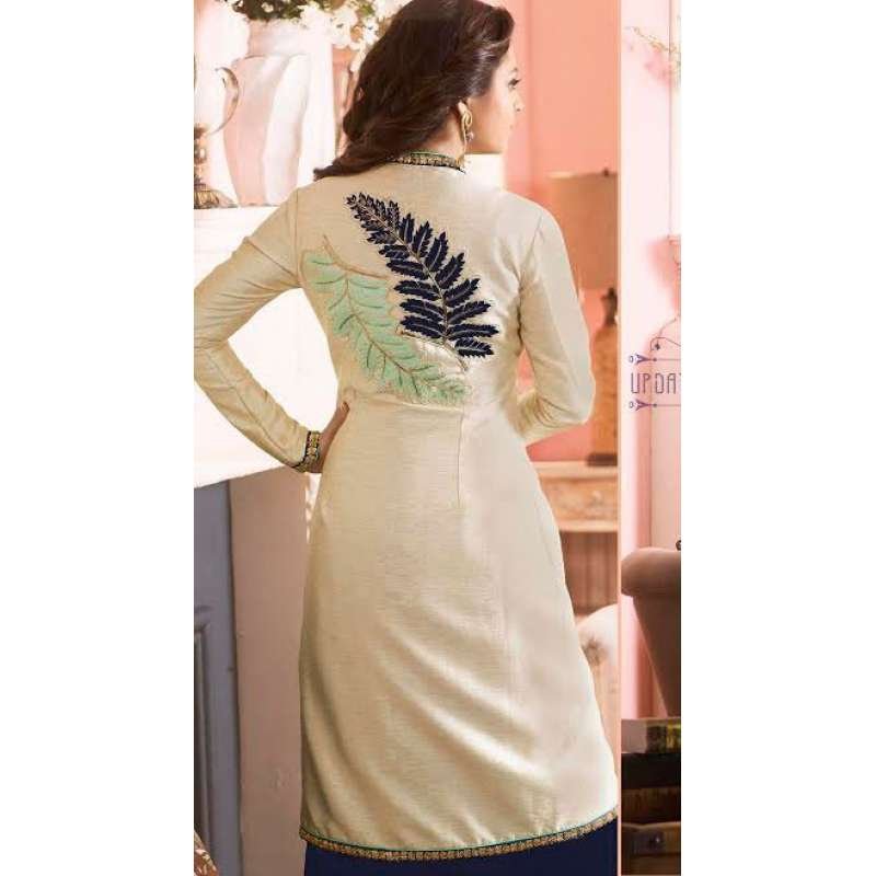 shown, Cream art silk asymmetric style indowestern kameez features sequins,