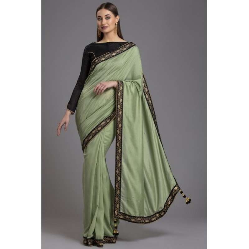 BISCAY GREEN CLASSIC BLUE BROCADE GOLD MOTIF SARI