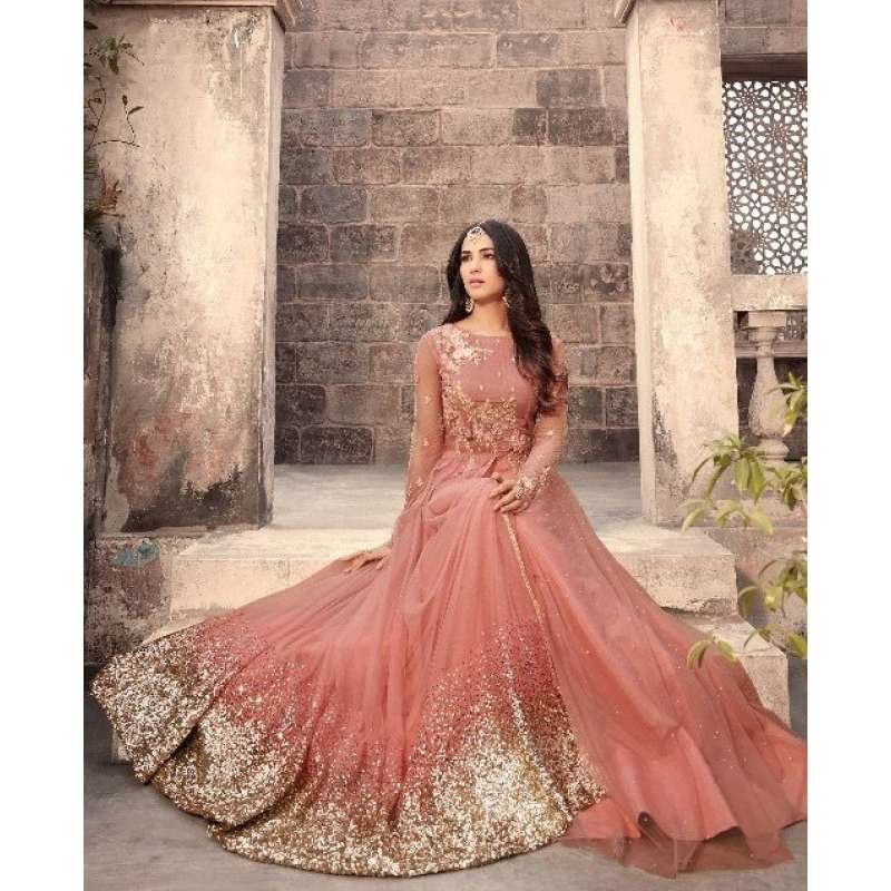 Pakistani Gown Peach Designer Anarkali Dress