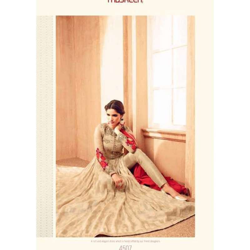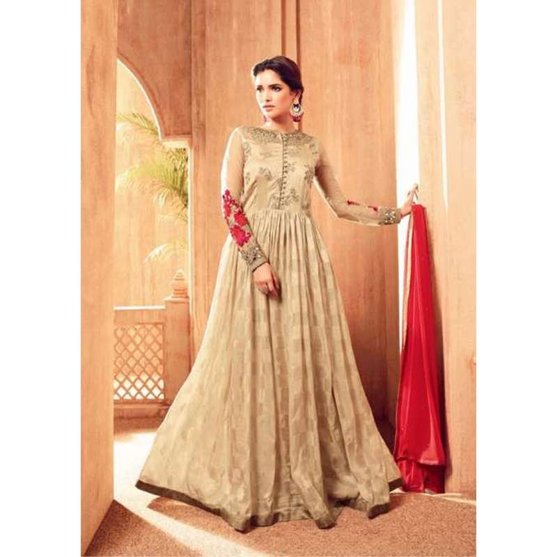 Beige Embroidered Anarkali Gown Designer Maxi Dress