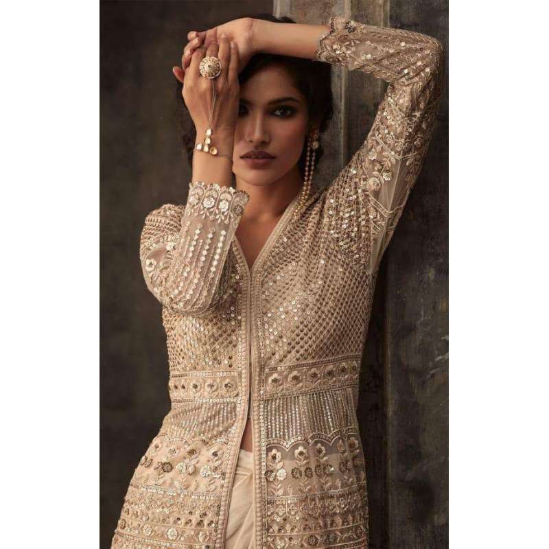 Beige Flared Anarkali Gown Indian Wedding Dress