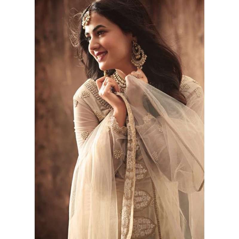 Net Designer Beige Cream Gharara Wedding Outfit