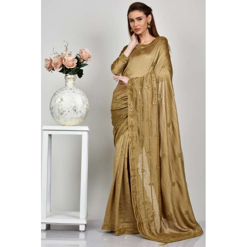Tags: beige, indian wear, stitched blouse, bridal saree, eastern style, bengali saree, festive saree, readymade saree, embroidered, asian, fashionable saree, sequin saree,