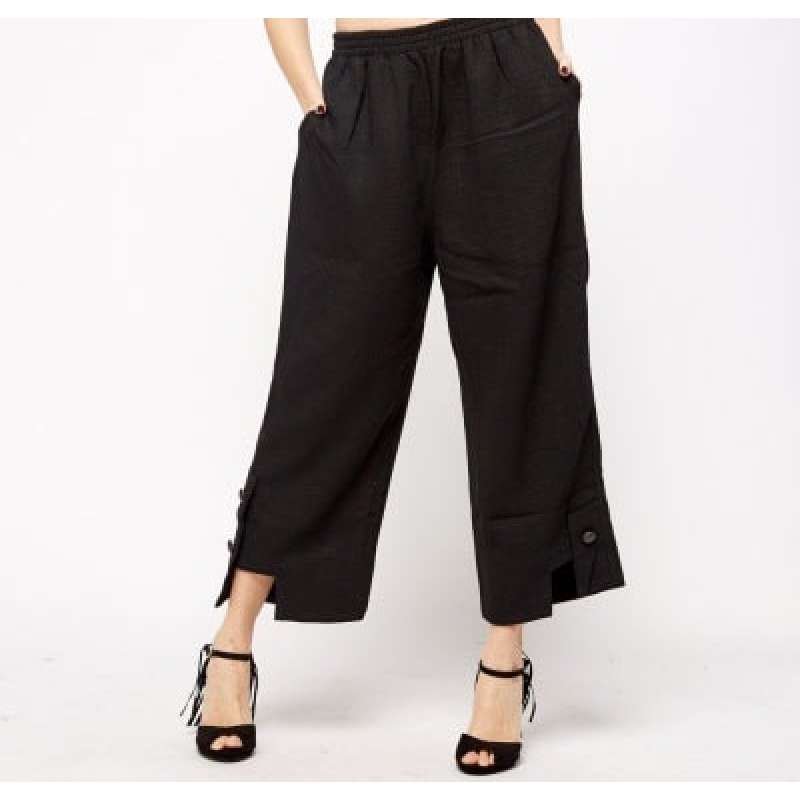 Black Detailed Hem Wide Leg Trouser