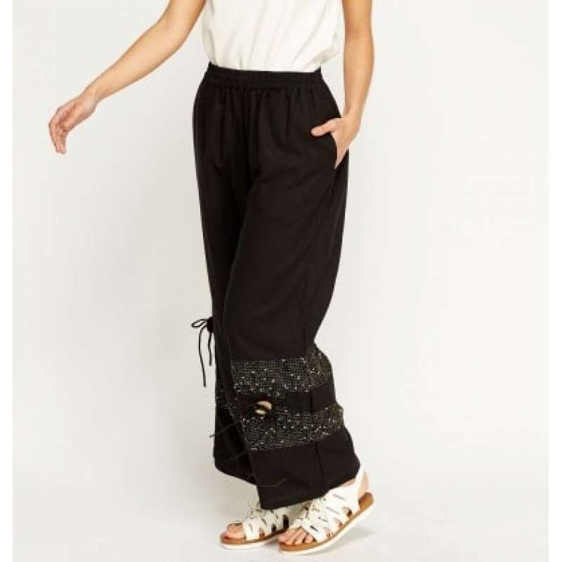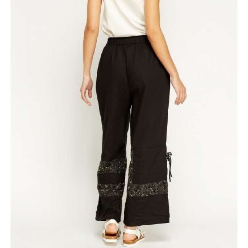 Stunning Black Embroidered Hem Wide Leg Trousers