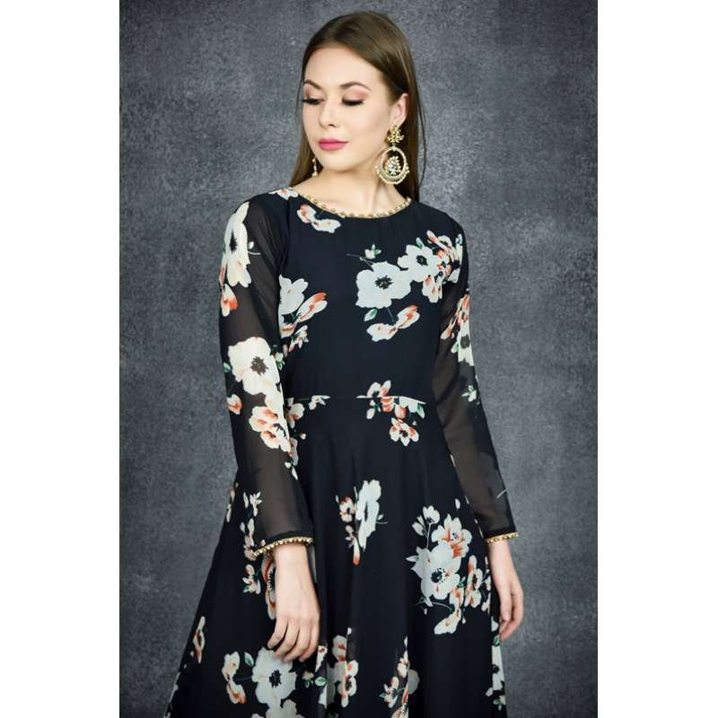 This fine and subtle long flowy dress can be grabbed for its beautiful printed shirt and dupatta and intricate bead detailings on the sleeves and dupatta to elevate your looks. It is paired with pencil trousers.