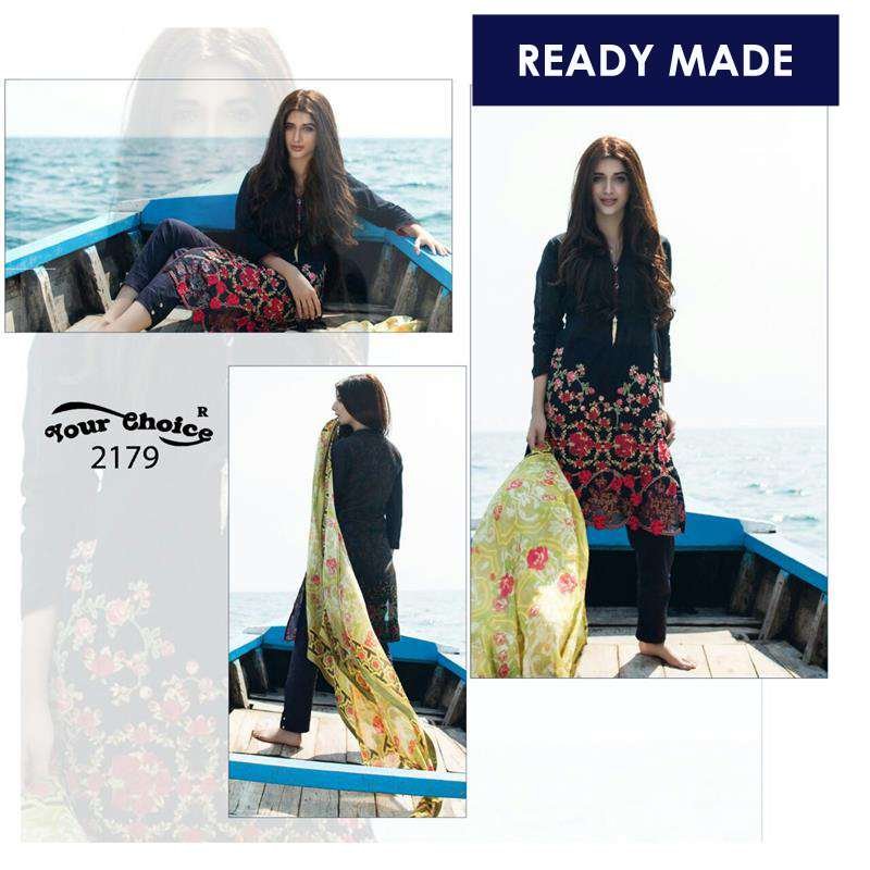 Black Pakistani Lawn Salwar Suit Readymade Summer Dress