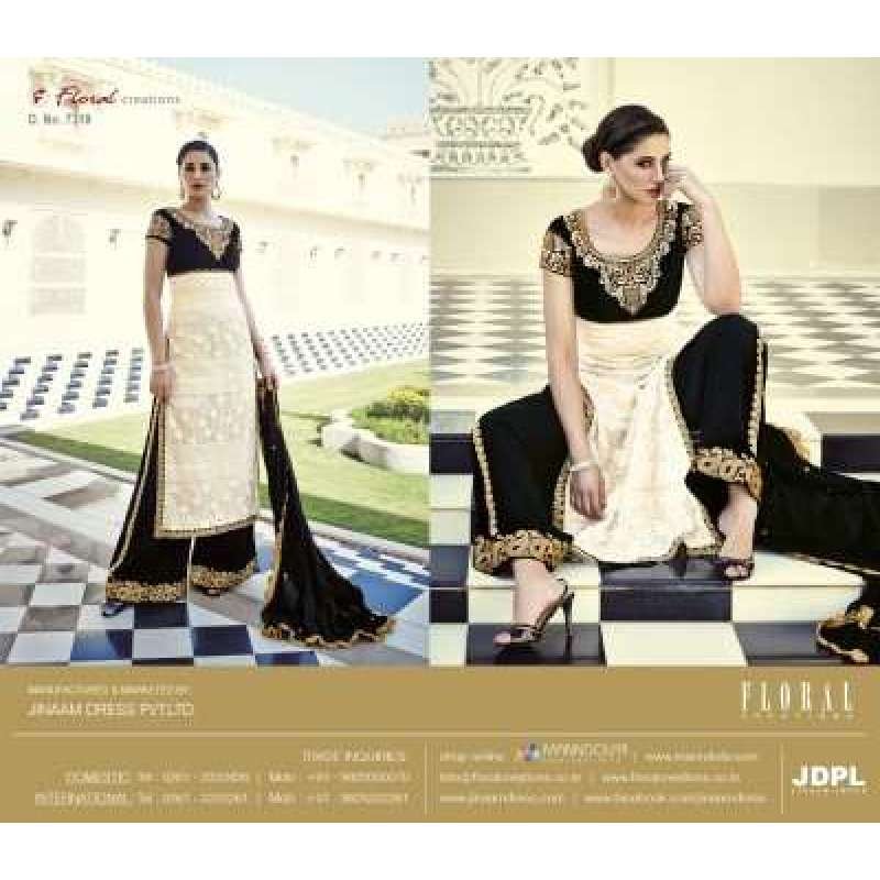 FL-7319 Black and White Nargis Fakhri Floral Designer Anarkali Gown in uk