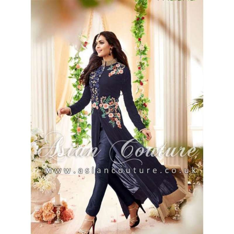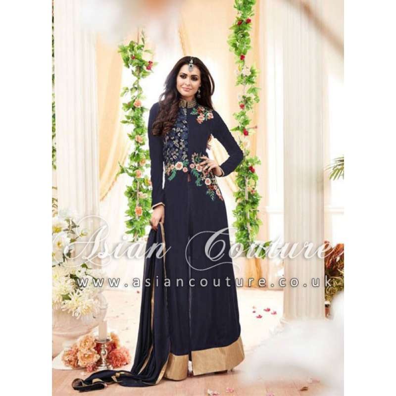 Blue Embroidered Anarkali Suit Indian Evening Dress