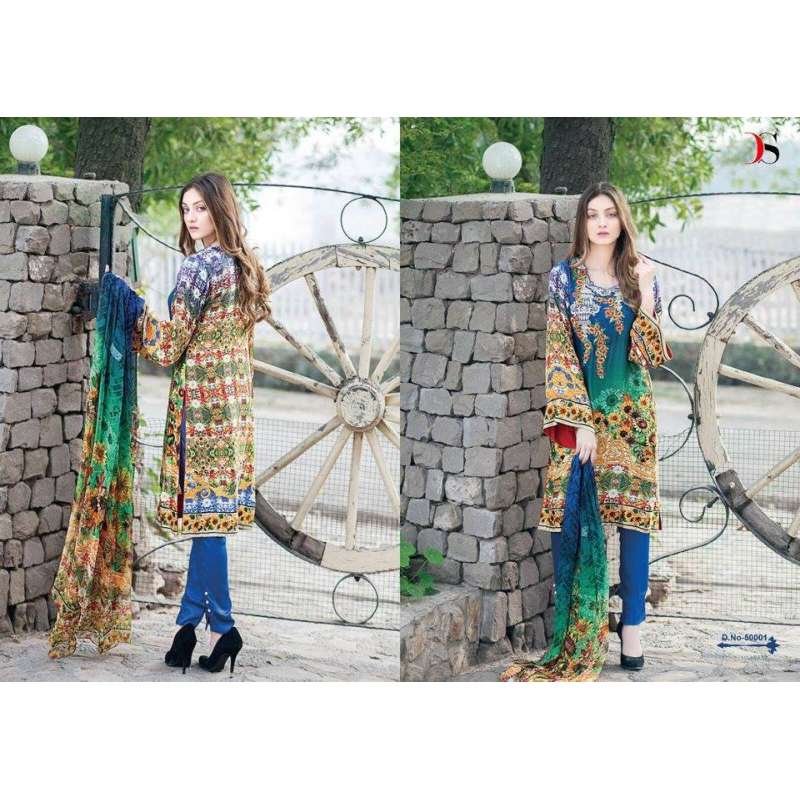 Stay fresh and stylish in this Blue Green Floral Printed Cotton Shalwar Kameez. Made from soft pure cotton, this full-length Lapis Blue suit features delicate self-embroidery directly on the fabric, creating a clean and graceful look without the need for patches. It comes with a printed lawn cotton bottom and a breezy nazneen chiffon dupatta, perfect for summer days and casual gatherings.