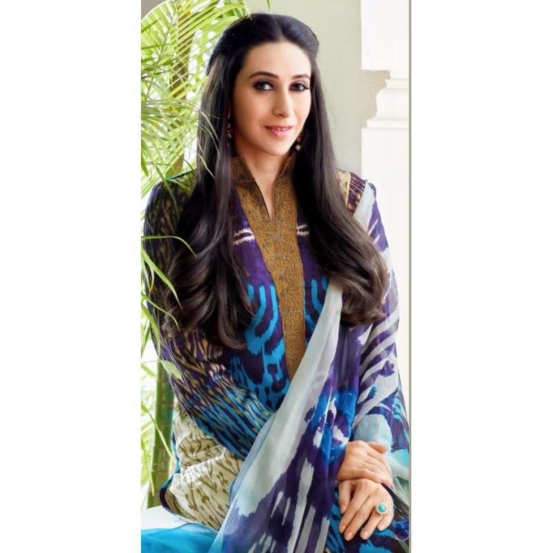 Karishma Kapoor in Pakistani style Printed Suit. Beauty and Elegance In this party wear digital Print Satin Georgette