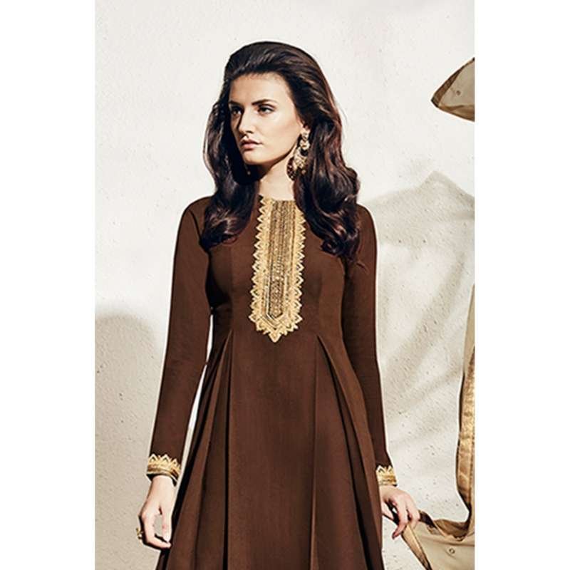 Brown Embroidered Georgette Indian Salwar Suit