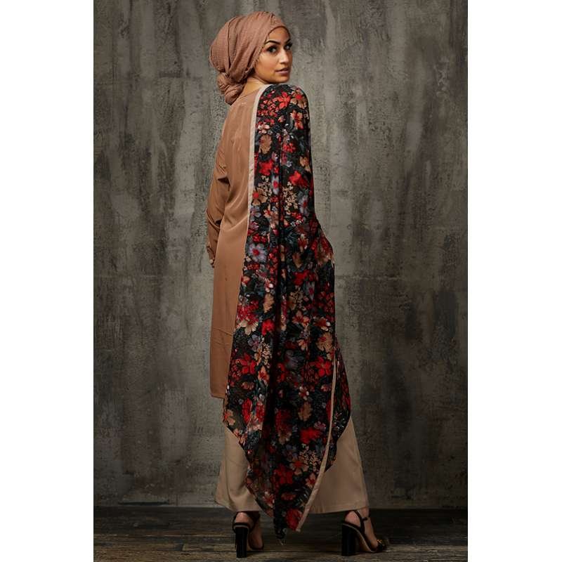 Contrasting shirt-palazzo with a beautiful floral print dupatta featuring detailings on neckline and sleeves.