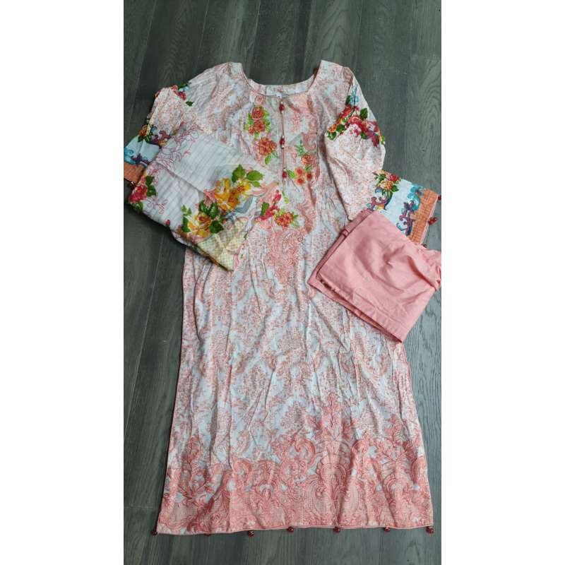 Elevate your wardrobe with the exquisite Coral Pink Floral Pakistani Lawn Suit. Crafted from premium lawn fabric, this suit offers a perfect blend of comfort and elegance. The captivating coral pink hue is adorned with intricate floral patterns, bringing a touch of grace and sophistication to your look. Accompanied by a 2-meter cotton floral shawl scarf, this ensemble is perfect for any occasion, from casual gatherings to festive celebrations. Experience the seamless fusion of tradition and style with this stunning Pakistani lawn suit.