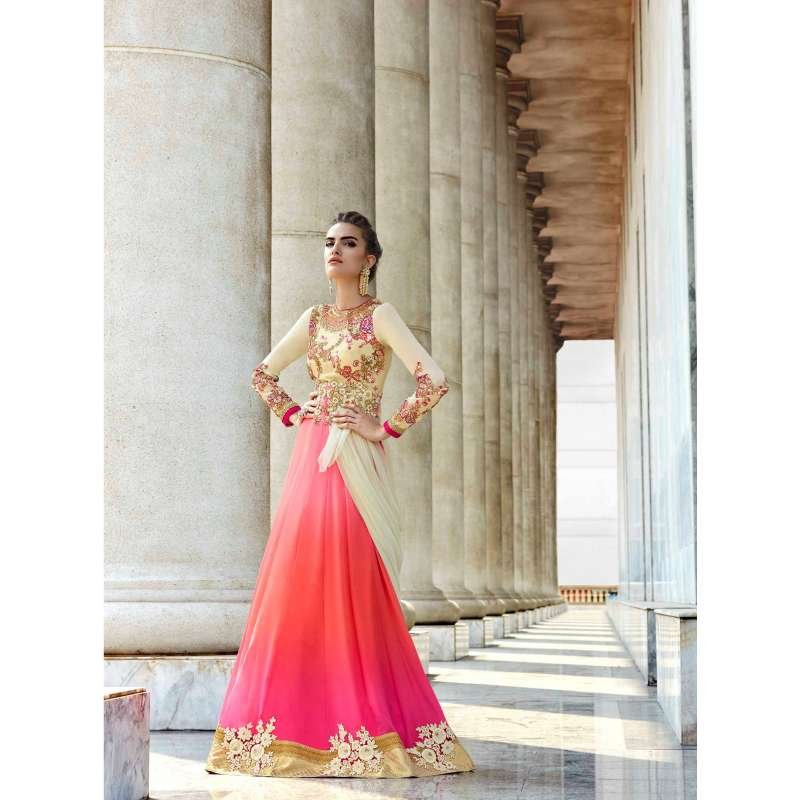 bridal fashion with this cream and pink khwaab embellished lehenga choli. Fabric
