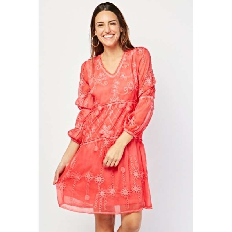 Tags: v-neck, smock dress, western style, women's wear, party wear.