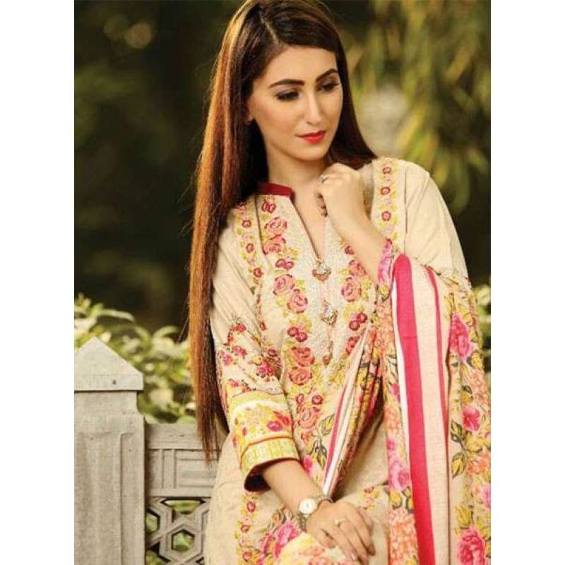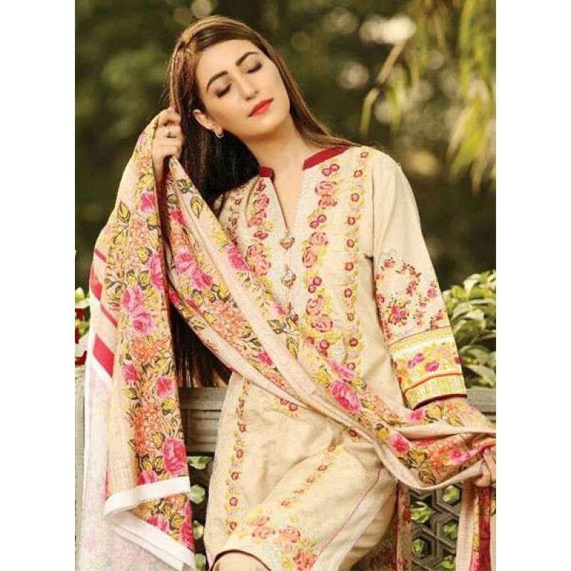 ZEA-D03 ESHA AISHA D03 CREAM BEIGE UNSTITCHED PAKISTANI POLY WOOL SHAWL SUIT