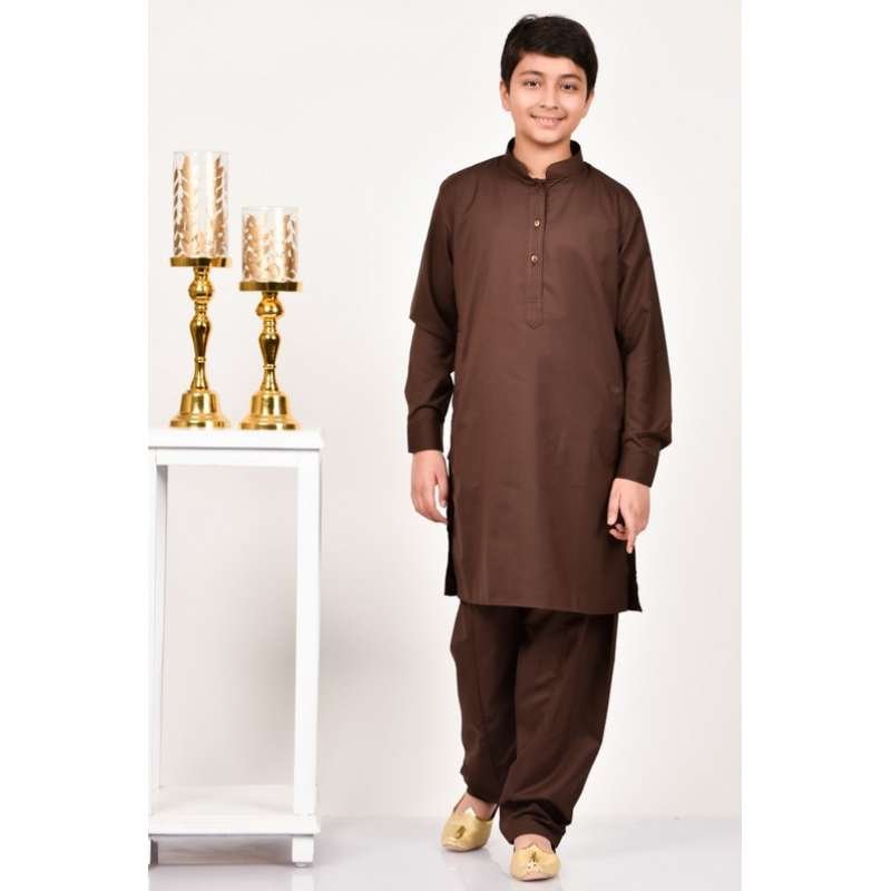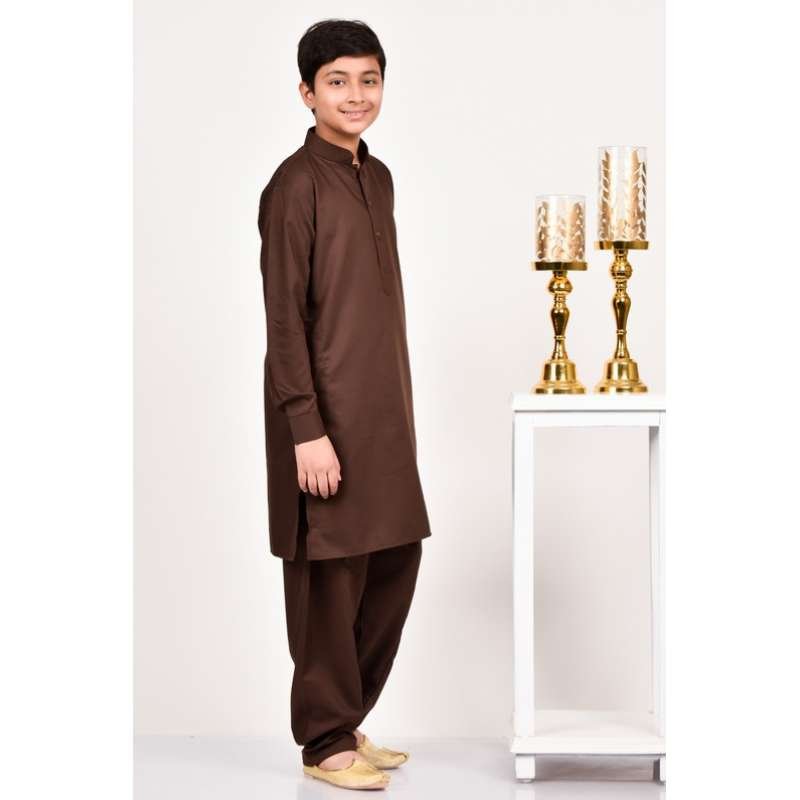 Dark Brown Kurta Shalwar Pakistani Boys Suit