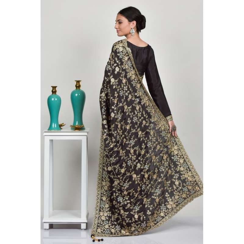 Dark Grey Embroidered Fancy Pakistani Designer Saree