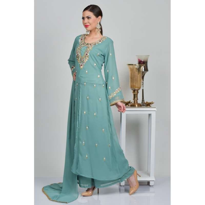 Dark Mint Front Slit Kameez Readymade Suit