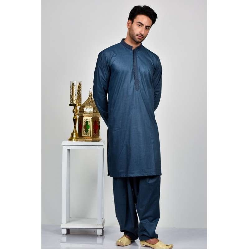 Denim Blue Pakistani Mens Kurta Shalwar Set