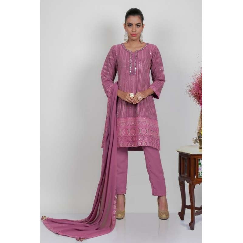 Pink Embroidered Stylish Suit Readymade Indian Designer Dress
