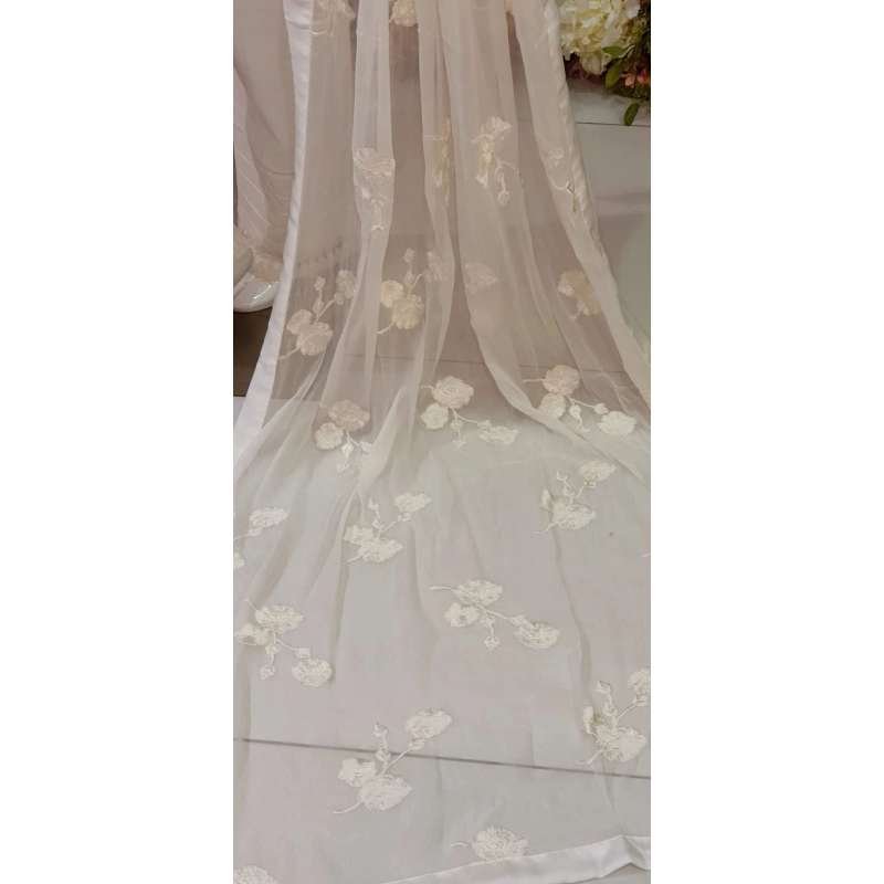 READYMADE PAKISTANI PREMIUM CHIFFON HEAVY SELF RESHAM (THREAD) EMBROIDERY FRONT & BACK. ZARI, DABKA & PEARL HAND EMBROIDERY IN FRONT.