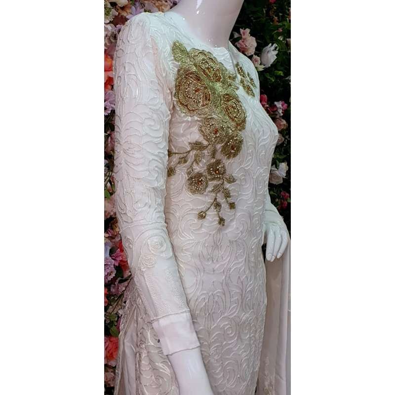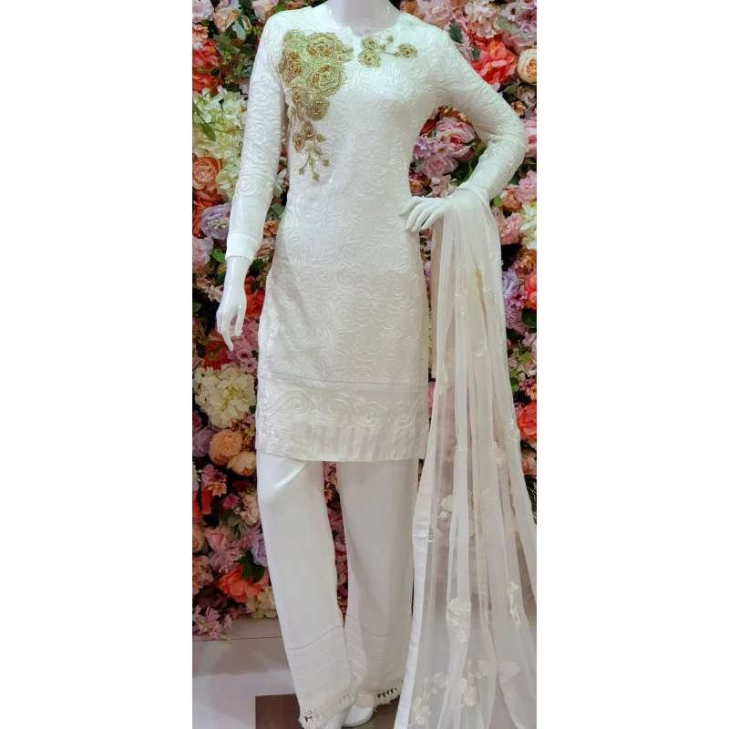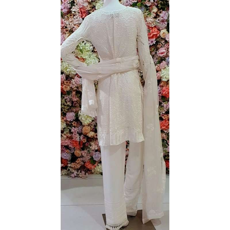White Chiffon Pakistani Party Readymade Suit