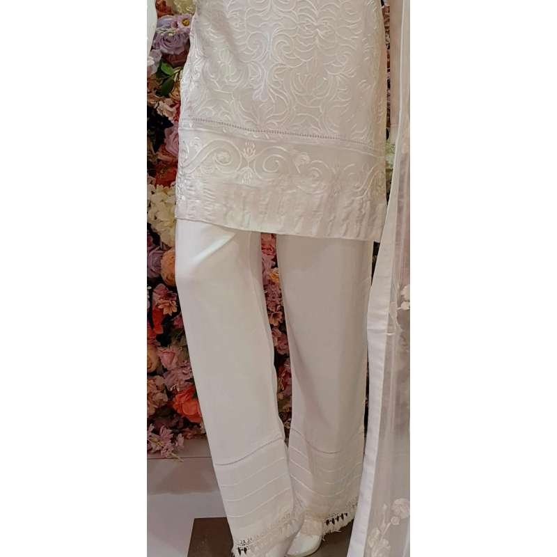 BOTTOMS IN PREMIUM VISCOSE WITH LACES ON ANKLE. CHIFFON WITH SELF COLOUR HEAVY EMBROIDERY DUPATTA