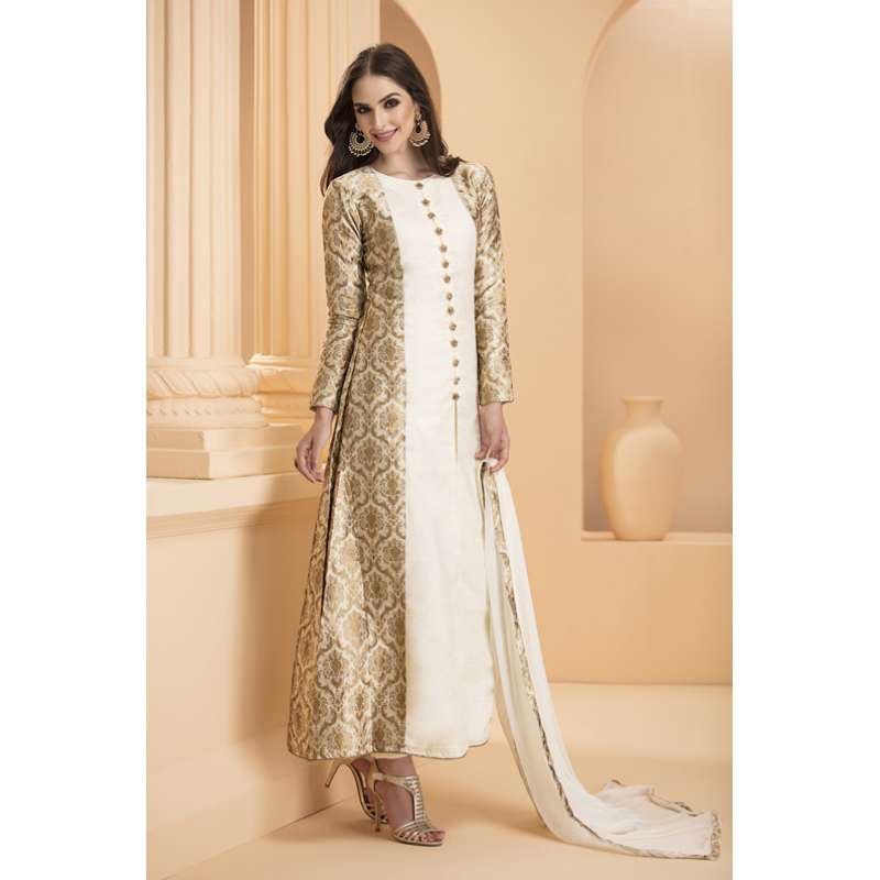 TOP : WHITE AND GOLDEN BROCADE, DUPION A SHIRT