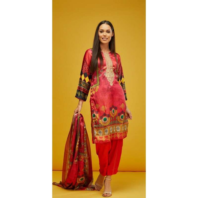 Readymade Pakistani designer printed silk salwar suit. it also comes with dupatta.