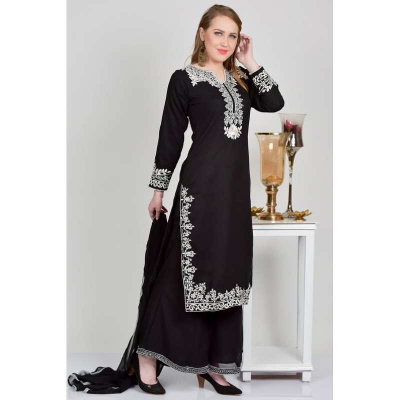 Black Georgette Gharara Style Suit