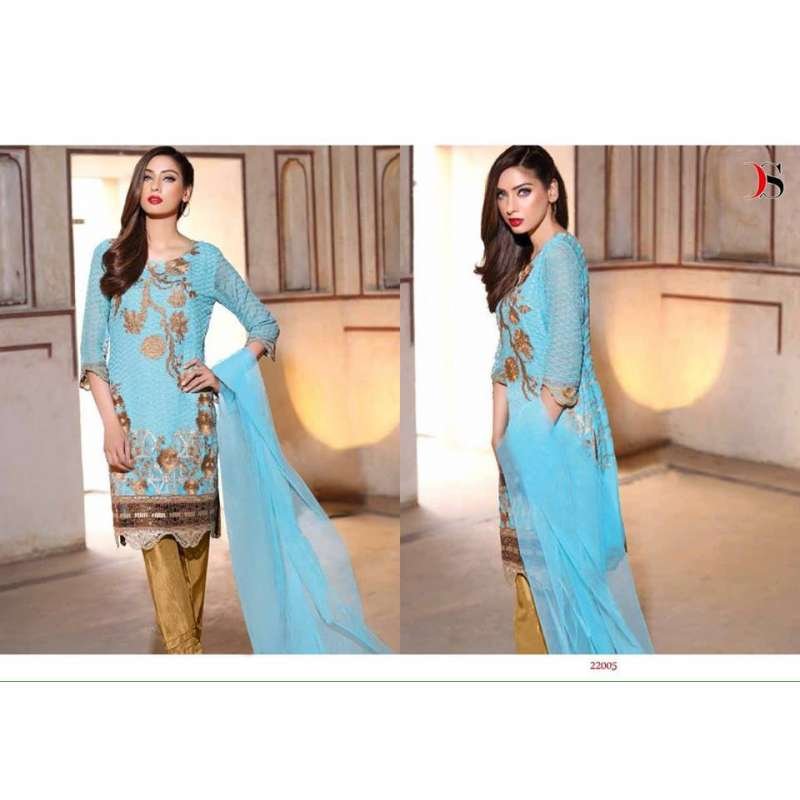 Tags: sky blue, baroque, Blue Pakistani Suit, Semi Stitched Pakistani Dress, Embroidered Georgette Suit, Nazneen Chiffon Dupatta, Pakistani Party Wear, Festive Salwar Suit, Designer Pakistani Suit