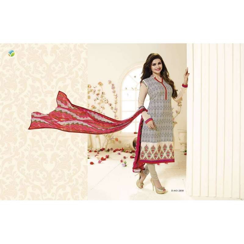 SLK2858 - Rose with White and Black Patterns Kaseesh Silkina Royal Crepe 3 Salwar Kameez Suit