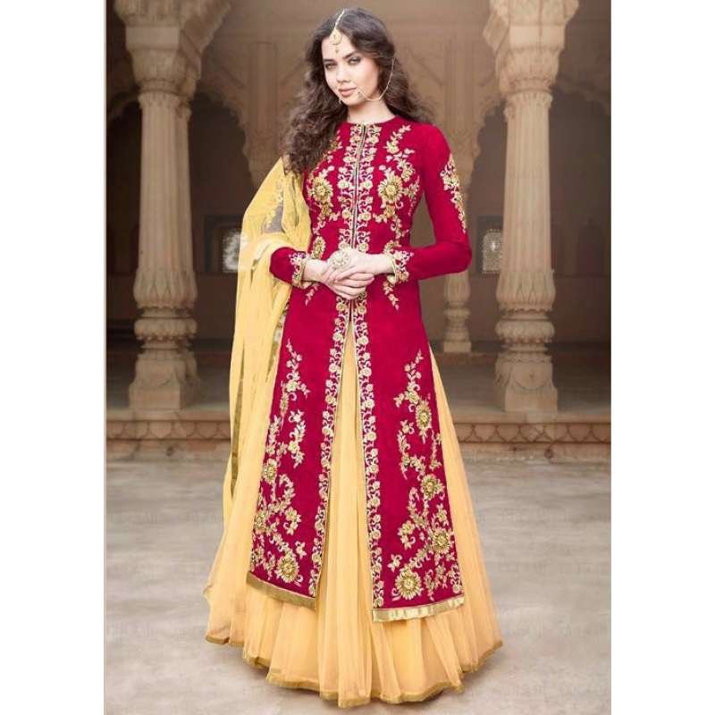Designer lehenga anarkali suit designed with embroidery. the designer choli is