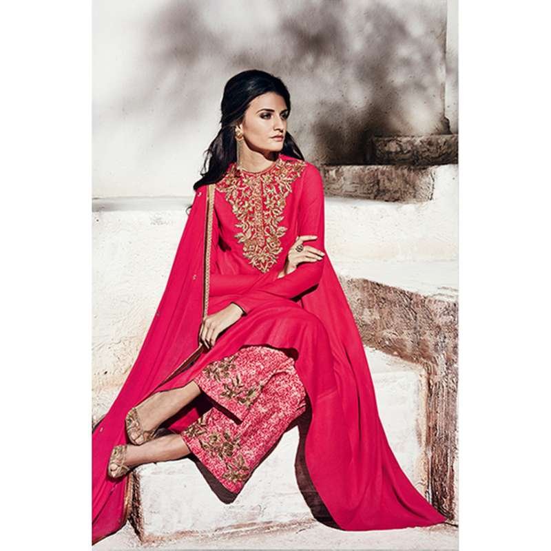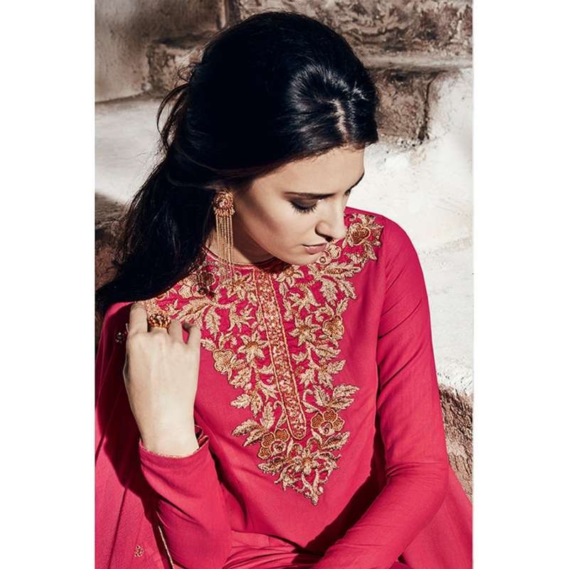Fuchsia Pink Embroidered Indian Ethnic Suit